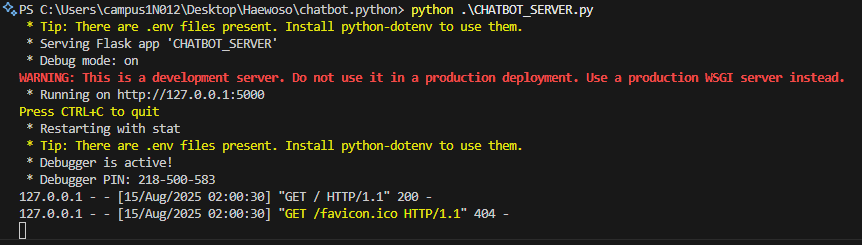 - 터미널에서 실행하면 Flask 개발 서버가 켜짐