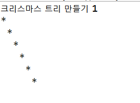 | [FOR문]을 활용하여 크리스마스트리를 만들어 보자.-2- (0) | 2019.12.25 |