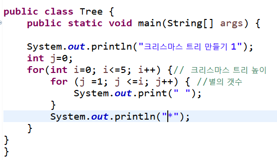 for(int i=0; i<=5; i++) {// 크리스마스 트리 높이
