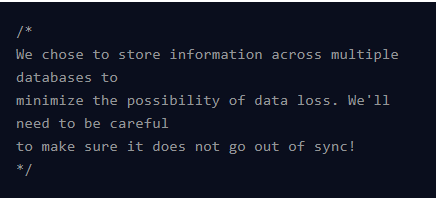 When comments are long we use the multi-line syntax: /* and */. | 주석이 길면 '/* */'로 여러줄 구문을 사용합니다 |
